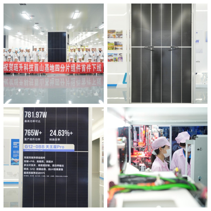 日前,在琏升科技眉山组件车间里,可交付765W多分片高效异质结组件成功下线并实现持续稳定量产。该组件搭载琏升科技研发的0BB银包铜技术电池片,采用多分片技术、高密度封装。这也是琏升科技全球首条异质结吉瓦级多分片765W高功率组件量产线投产。该公司在高效光伏组件研发与智能制造领域再树行业新标杆,以创新技术与高端智造“双轮”驱动,持续领跑全球异质结光伏赛道。